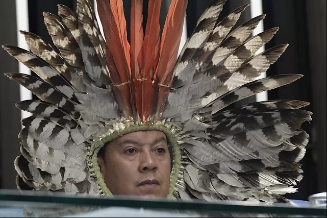 O clima no acampamento dos indígenas localizado ao lado do Teatro Nacional, em Brasília, na noite desta quarta-feira, é de tristeza, decepção e revolta. Comovida, uma das principais lideranças dos povos indígenas no Brasil, Sônia Guajajara, me respondeu ao pedido de entrevista com um abraço. Também muito emocionada, a coordenadora-geral da mobilização, que ganhou o nome de “Levante pela Terra”, Isabel Tukano, precisou de um tempo para encontrar as palavras diante do que aconteceu. “Tantos parlamentares que estão falando bonito, em prol do país, mas infelizmente são os traidores da pátria, esses são os genocidas também. É muita revolta, muita”.