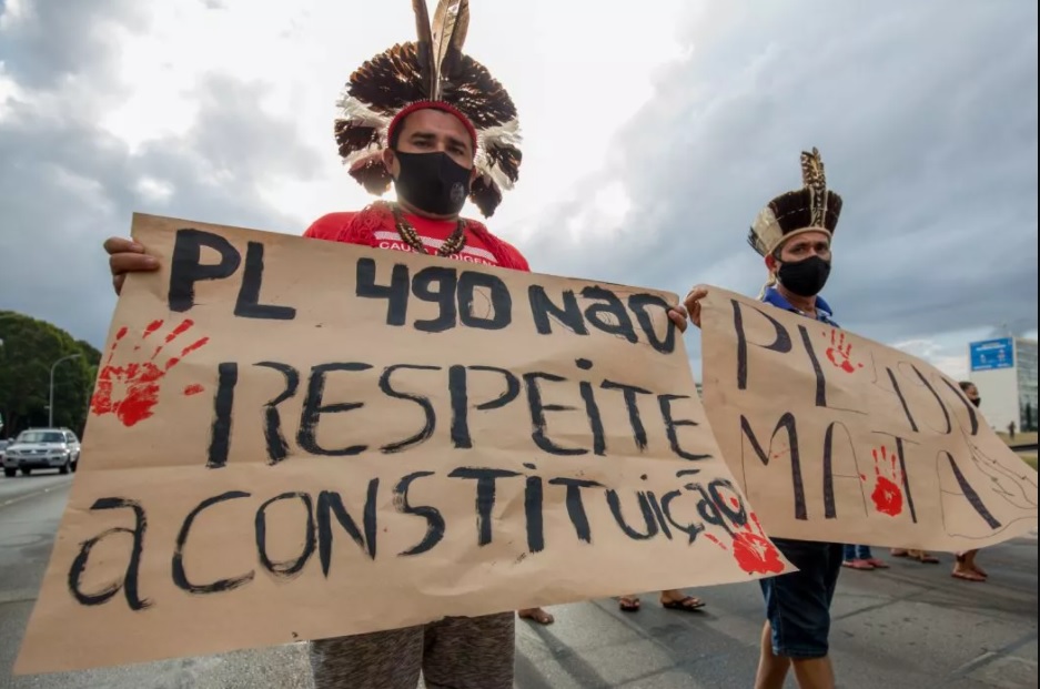 A proposta, que prevê alterações no Estatuto do Índio (Lei 6.001/1973), transfere da União para o Congresso a prerrogativa de demarcar terras indígenas. O texto também insere no Estatuto a tese do Marco Temporal que reconhece o direito à terra somente de povos que ocupavam o território até a promulgação da Constituição de 1988 e barra a ampliação da terra indígena já demarcada. O projeto de lei elimina a consulta livre prévia às comunidades afetadas e permite a implantação de hidrelétricas, mineração, estradas entre outros empreendimentos. O PL 490 também coloca em risco a política de “não contato” com os indígenas isolados ao prever a hipótese de contato por “interesse público”, que poderia ser intermediado por “empresas públicas ou privadas” contratadas pelo Estado.