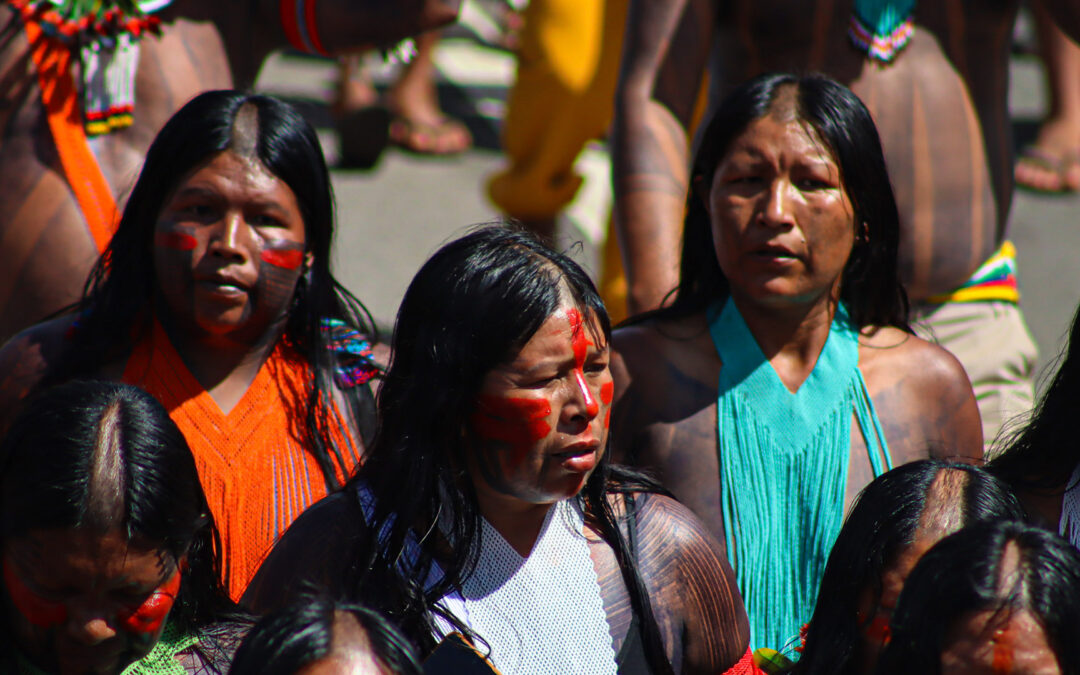 A imagem que abre este artigo mostra mulheres Kayapó durante a primeira Marcha do ATL 2026 (Foto: BepmoroI Metuktire/Engajamundo).