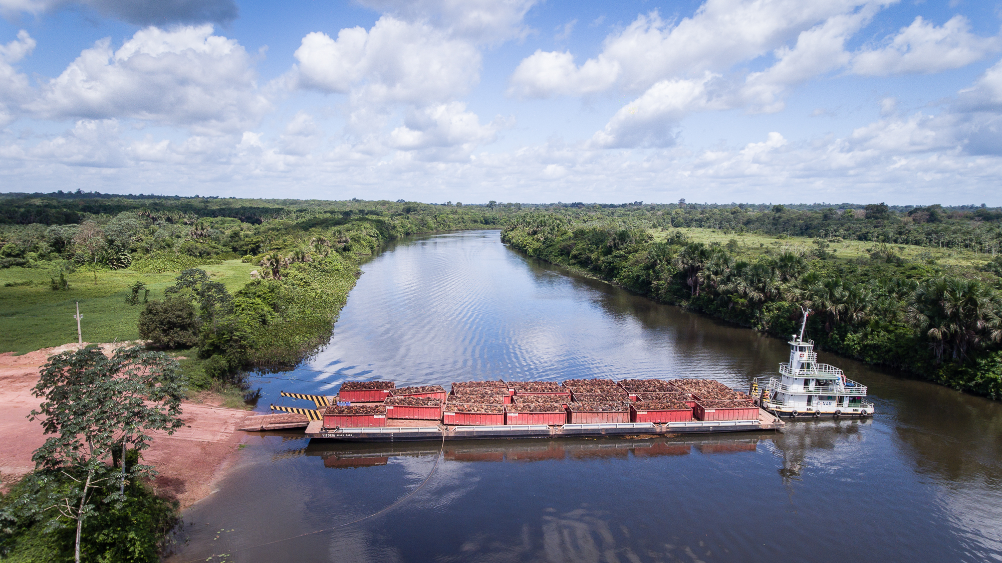 • Balsa carregada de dendê da produção da BBF no Rio Acará (Foto: Cícero Pedrosa Neto/Amazônia Real)