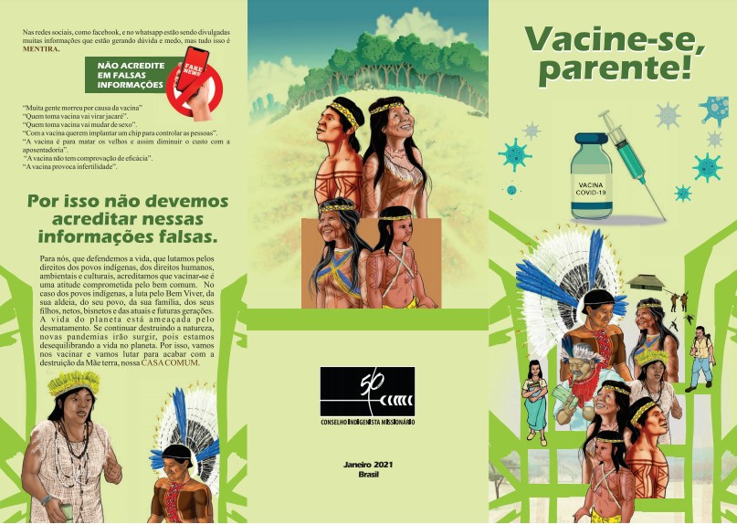 A vacinação dos povos indígenas contra a covid-19 tem enfrentado também o desafio da desinformação. As notícias falsas chegam por todos os lados: redes sociais, serviços de mensagens e discursos políticos. De olho neste cenário, o Conselho Indigenista Missionário – Cimi Regional Goiás/Tocantins produziu o folder “Vacine-se, parente!”, com informações esclarecedoras sobre a imunização.