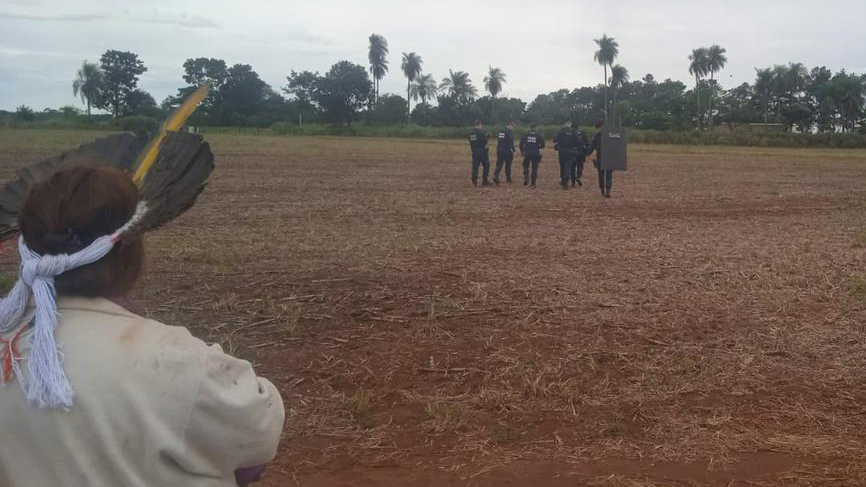 Os indígenas temem um novo massacre, como o ocorrido no tekoha Guapoy em 2022, também no Mato Grosso do Sul; policiais militares ameaçam despejar comunidade sem mandado judicial