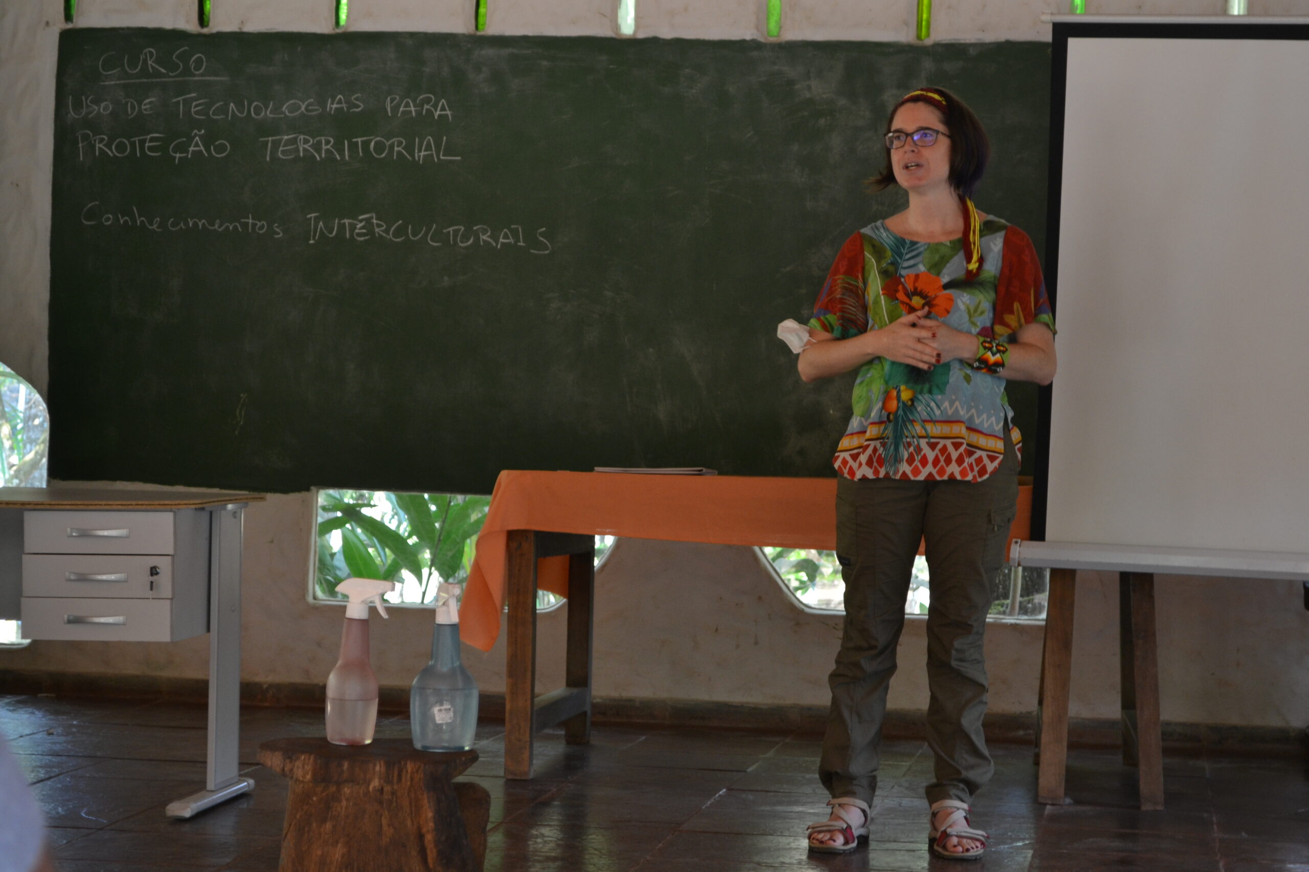 Durante os cursos os indígenas estudam cartografia, orientação e de localização, uso de gps no celular e a registrar com fotos e com vídeos no aplicativo Timestamp – que incorpora as coordenadas geográficas nas imagens, conhecem como fazer registros de ameaças e outras situações no aplicativo Alerta Clima Indígena (ACI) e geolocalização no aplicativo Avenza. No treino com drones eles aprendem técnicas de sobrevoo, captação de imagens e geração de mapas georreferenciados.