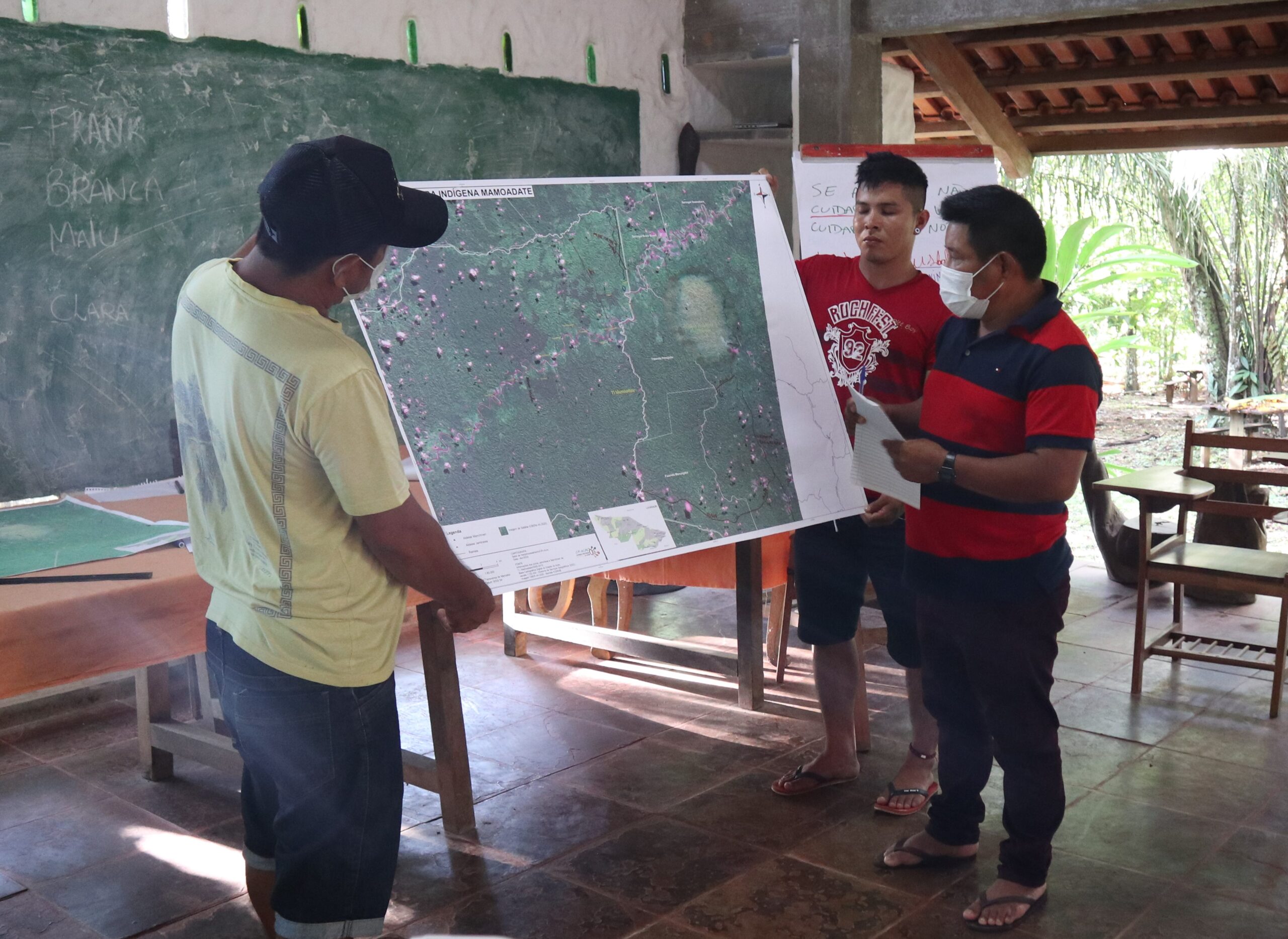 “O plano de monitoramento nos mostra como devemos fazer esse trabalho, os materiais que vamos precisar, desde gps, smartphones, barcos e drones. Já encontramos muitos vestígios de parentes isolados, mas tudo a gente faz com muito cuidado. Se percebemos qualquer sinal a gente se retira logo. A gente tem cisma de encontrar com os parentes, e também de encontrar madeireiros no meio da floresta. Fazemos esse monitoramento porque é importante cuidar dos parentes isolados. O que a gente quer é que eles mesmo estejam no comando de suas vidas, para poder viver na espiritualidade deles, na cultura deles. Se um dia eles saírem, mais na frente, que seja por conta própria”, explica Mateus Manxineri, monitor da TI Mamoadate.