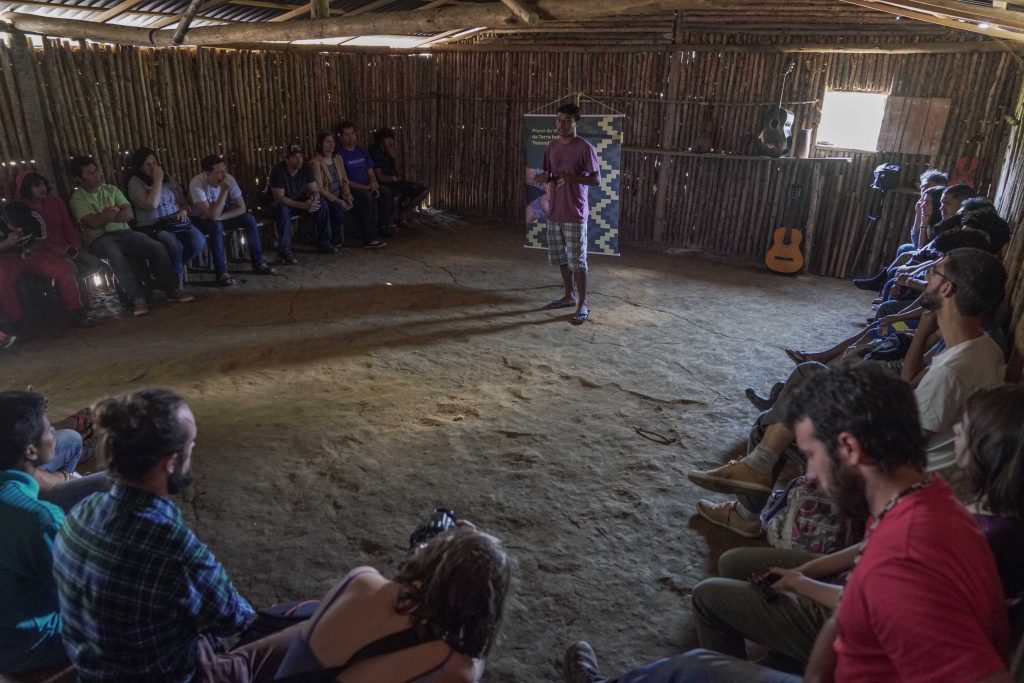 Tiago Karai foi uma das vozes que apresentou o Plano de Visitação no opy (foto: Luiza Calagian)