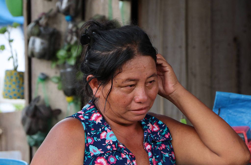 Farias foi criada na comunidade indígena no rio Negro, perto de Novo Airão (AM). Não sabe qual é a sua etnia, mas diz ter orgulho de ser indígena. Mora na ocupação desde abril do ano passado junto com o marido, também indígena, e o filho.