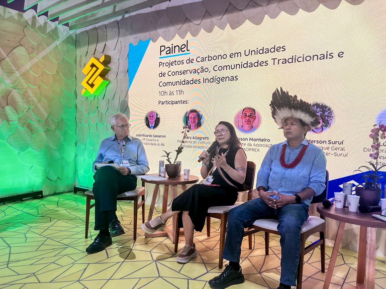 Anderson Siri, vice-cacique do povo Paiter-Suruí, de Rondônia, também presente no painel de debate, afirmou que os territórios e os povos indígenas têm um grande potencial na participação de projetos de créditos de carbono. “Esses projetos são uma forma de gestão territorial, mas lembro aqui que é preciso ser feito com consciência e responsabilidade, além das parcerias para orientação para nós, povos indígenas, e que possamos buscar menos impactos negativos em nossos territórios e nossa biodiversidade”, pontuou.