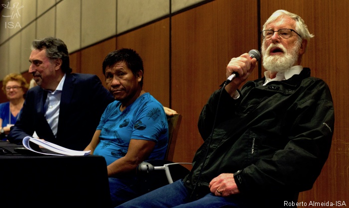 Lado a lado, Resende Sanöma e Ghillean Prance em mesa do evento Belém+30|Roberto Almeida-ISA