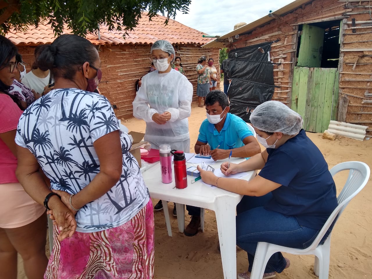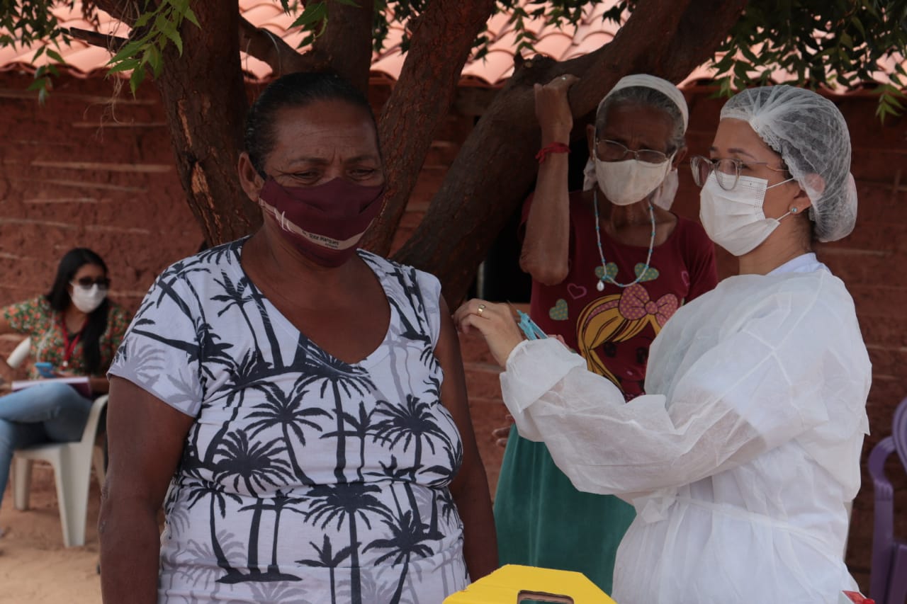 A comunidade recebeu a primeira dose da vacina AstraZeneca e, daqui a três meses, receberão a segunda, nos informou a enfermeira Maria Luíza.
