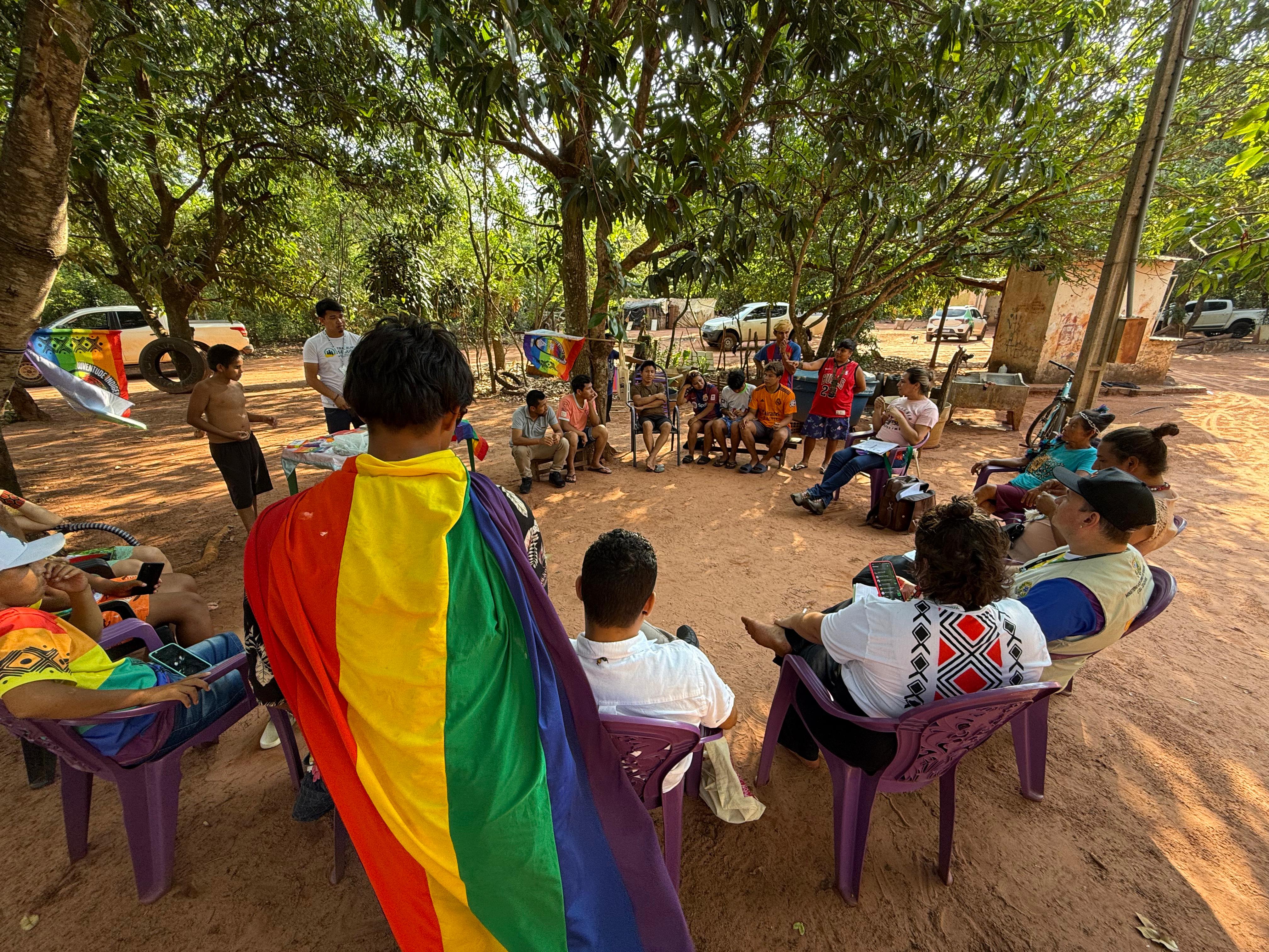 Os registros de preconceito, violência e dor foram compartilhados em rodas de conversa e oficinas de escuta com indígenas LGBTQIA+ e lideranças das aldeias. As atividades aconteceram ao longo de cinco dias com a participação de, pelo menos, 400 pessoas, entre caciques, rezadeiras, jovens LGBTQIA+ e professores.