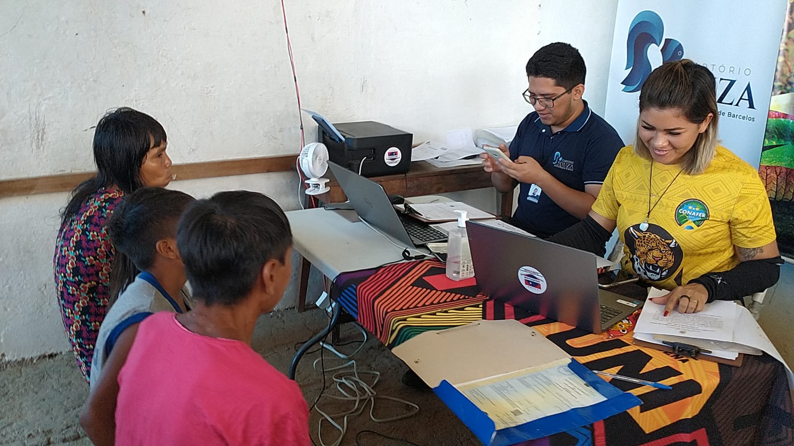 A coordenadora-geral de Promoção do Registro Civil de Nascimento, Tula Brasileiro, acompanha o mutirão na terra indígena e afirma que são muitos os desafios para o atendimento na região: “Um dos eixos centrais da nossa atuação é viabilizar formas de acesso. As distâncias para chegar ao território demandam uma logística de transporte que envolve viagens de barco, avião e helicóptero. Além disso, temos que montar uma estrutura que vai desde a alimentação dos servidores, pontos de energia elétrica, até a disponibilização de rede de internet”, afirma.