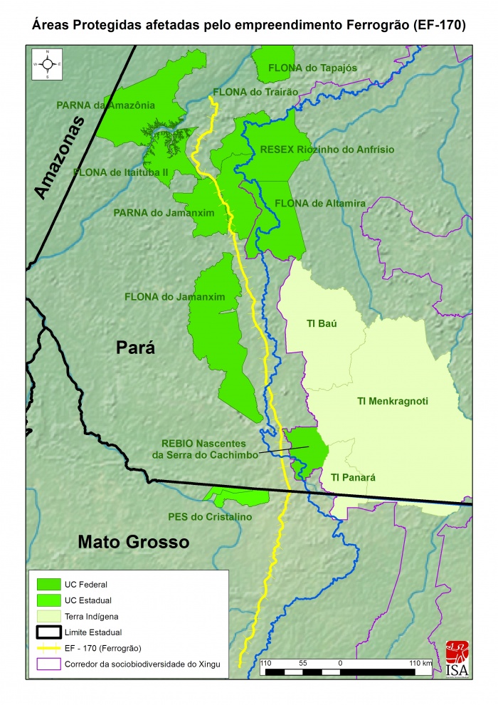 Embora não tenha sido licitada nem licenciada, o governo federal liderou o processo de recategorização e desafetação das Unidades de Conservação (UCs) vizinhas das TIs Baú, Mekragnoti e Panará, com a justificativa de implementar a estrada de ferro e de resolver os conflitos fundiários da região.