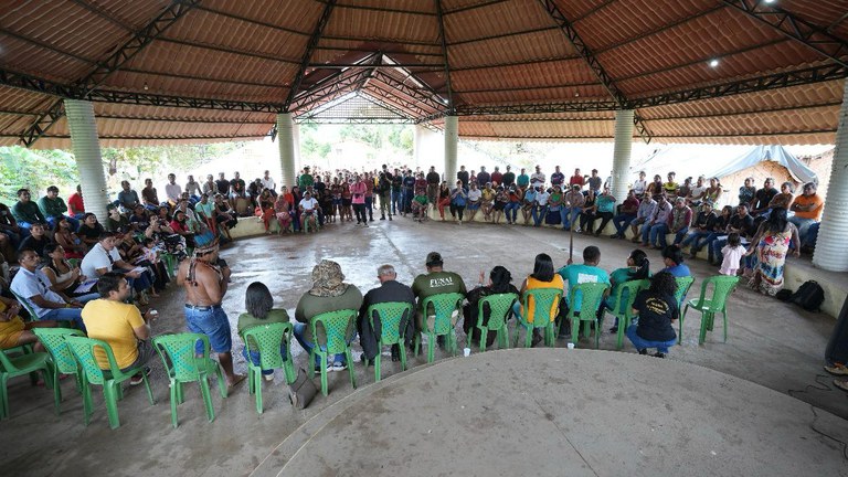 O relator da ação no STF, ministro Luís Roberto Barroso, ressaltou a relevância dos resultados. “O resultado das medidas adotadas pela União para efetivar a desintrusão é significativo. Na TI Yanomami, vitimada por grave crise humanitária, houve redução de 98% dos garimpos ativos”, registrou. “Pelas razões apresentadas, entendo que houve resolução do mérito desta ação, especialmente em relação aos problemas estruturais identificados nos itens c e d da petição inicial”, concluiu o ministro. Diálogos com as comunidades indígenas fazem parte do cronograma das operações a exemplo de encontro com lideranças da TI Arariboia, no Maranhão | Foto: Governo Federal
