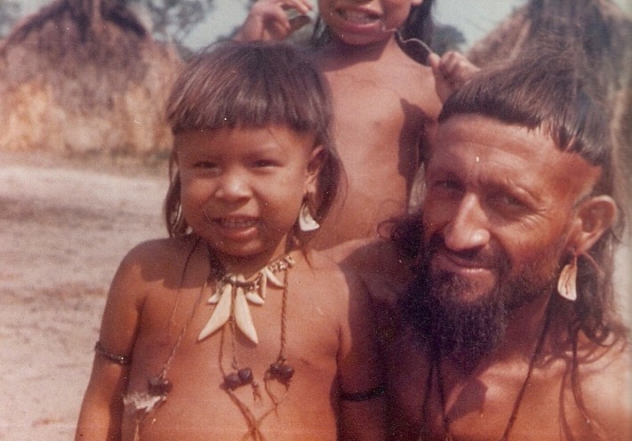 Vicente Cañas junto a uma criança Enawene-Nawe em 1975. Foto: Arquivo OPAN/CIMI