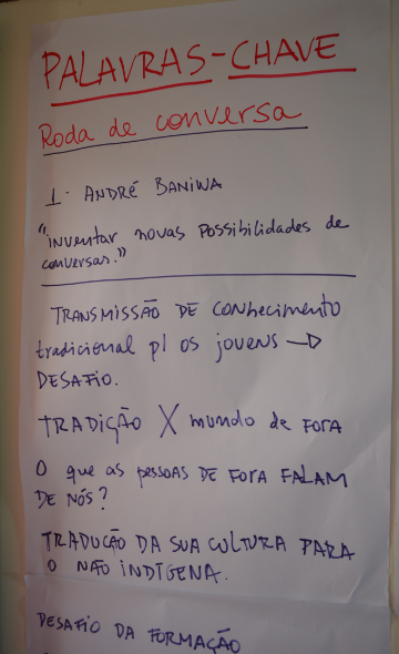 A oficina contou no primeiro dia com uma inspiradora Roda de Conversa “Novas histórias que precisam ser contadas. Como nos tornamos os novos narradores do Rio Negro ?”.Todos os participantes falaram um pouco sobre seus pensamentos, ideias e fizeram uma troca de experiências. Os principais pensamentos e afirmações de cada um foram escritos para compor o material de apoio durante a oficina.