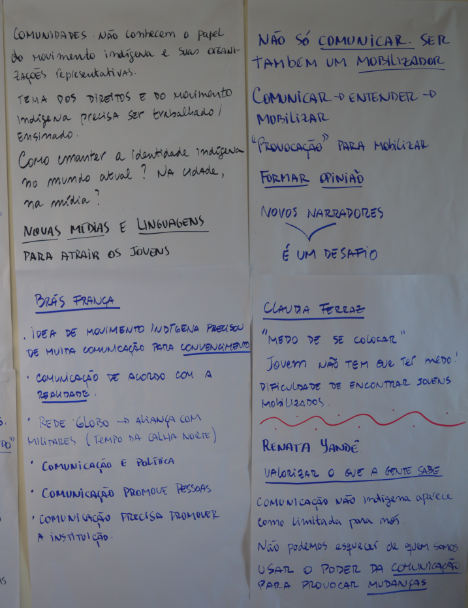 O comunicador Anápuáka Muniz e a jornalista Renata Machado compartilharam saberes, informações e dicas importantes aos comunicadores indígenas, mostrando também um pouco da história da comunicação indígena no Brasil. Falaram sobre as dificuldades e obstáculos que um comunicador indígena enfrenta, das diferentes mídias, formas de produção e edição.