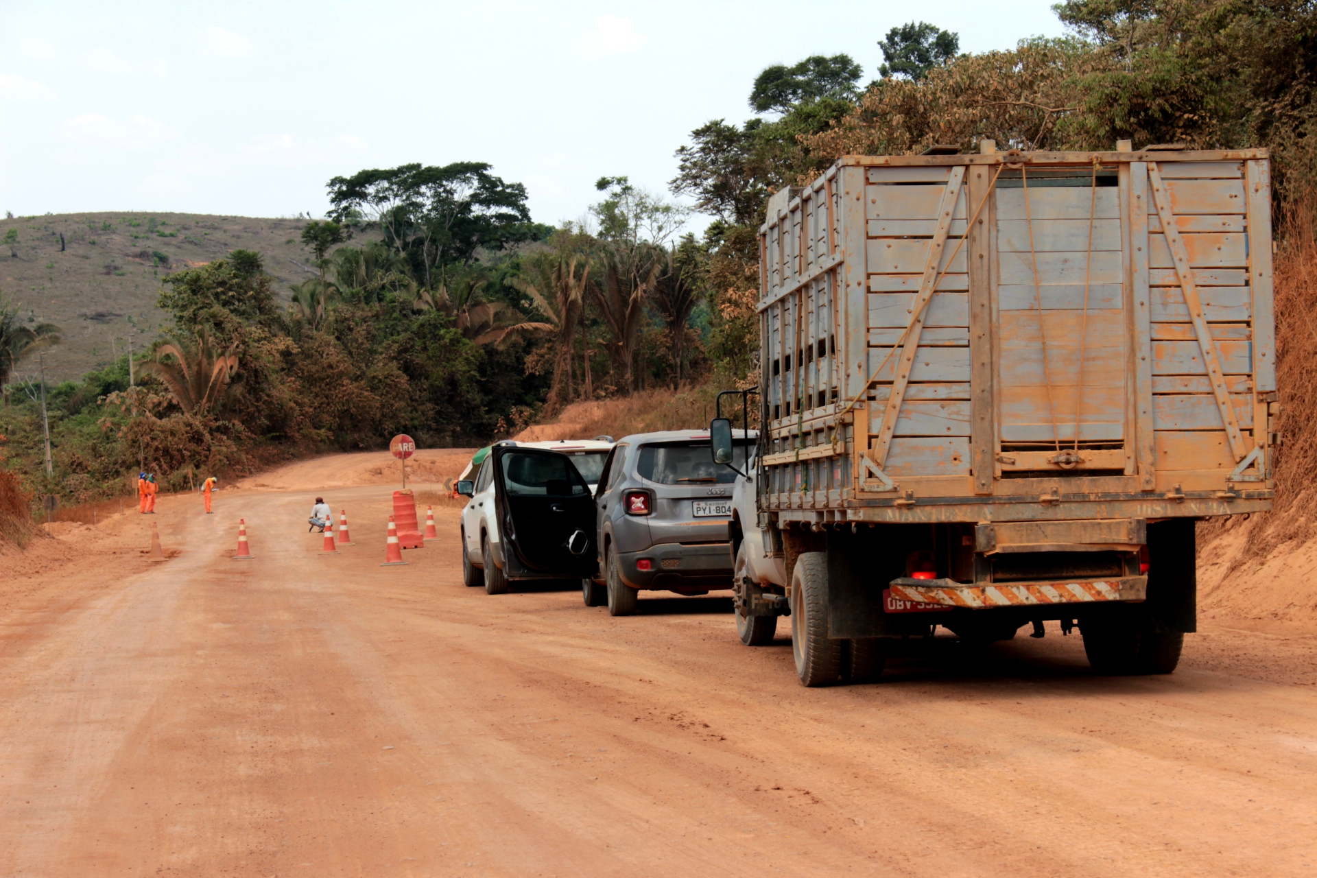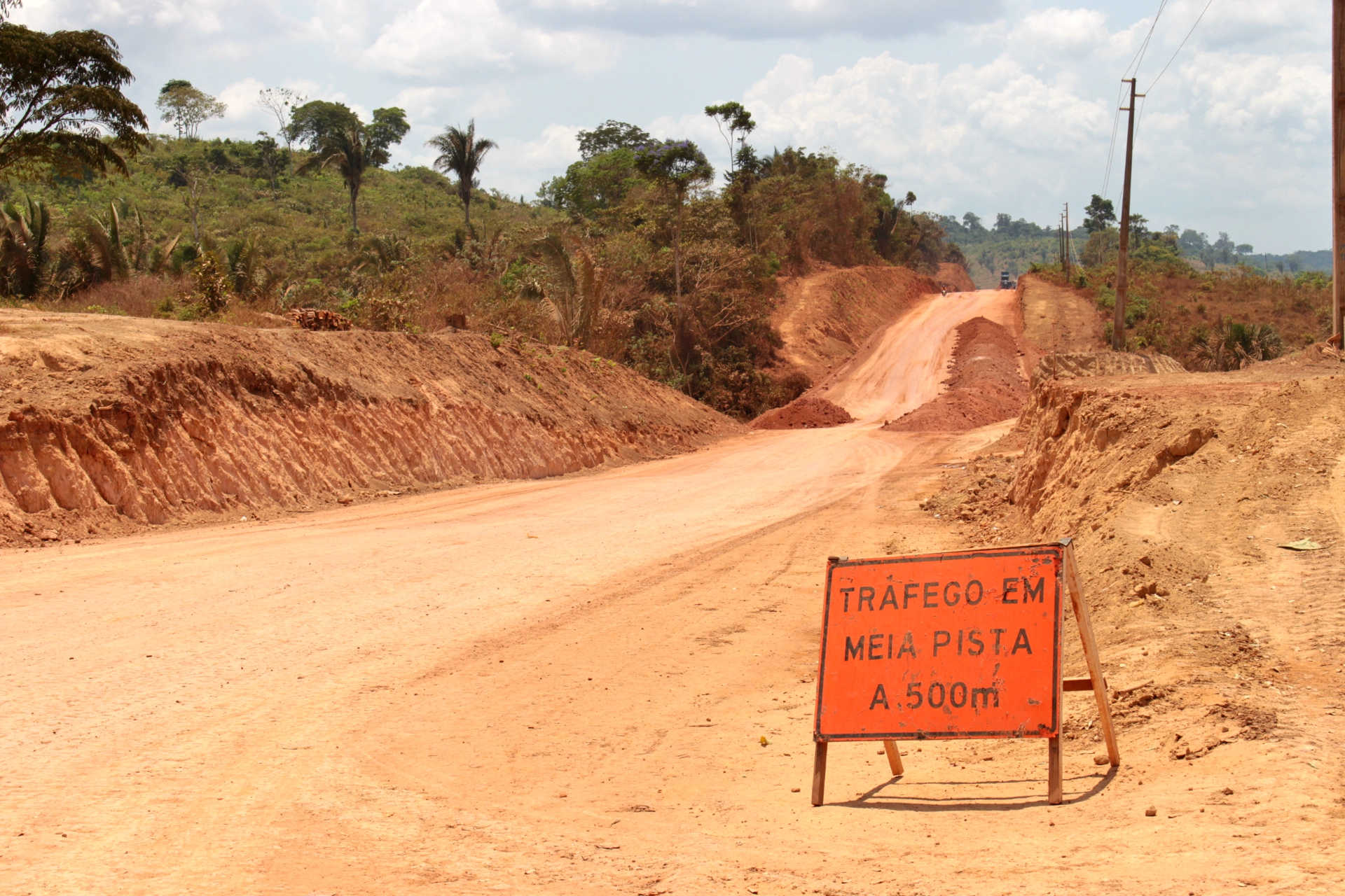 Além da rodovia esburacada e poeirenta, o que contribui para a lentidão do percurso são as obras de pavimentação. De meia em meia hora, próximo ao município de Itupiranga, uma das pistas é bloqueada para terraplanagem e compactação do solo.