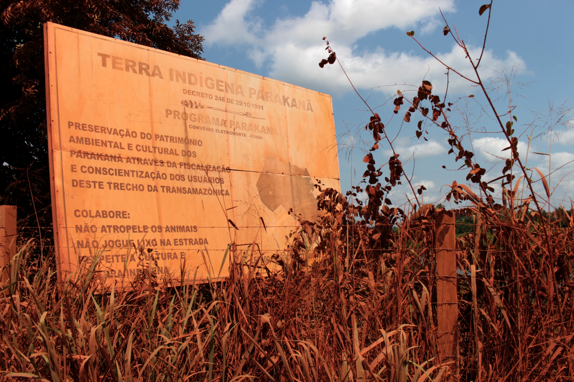Uma placa, coberta de poeira e com as letras quase apagadas, permite ler que aquela terra foi homologada pelo Decreto 248, de 29 de outubro de 1991. São 351,7 mil hectares, com a situação jurídica regularizada.